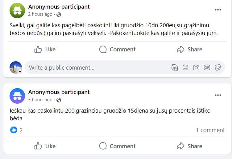 Facebook grupės tokios kaip „Paskolos iš žmonių” yra labai aktyvios, čia nuolat vyksta veiksmas. Facebook turi nemažai privalumų, pavyzdžiui: