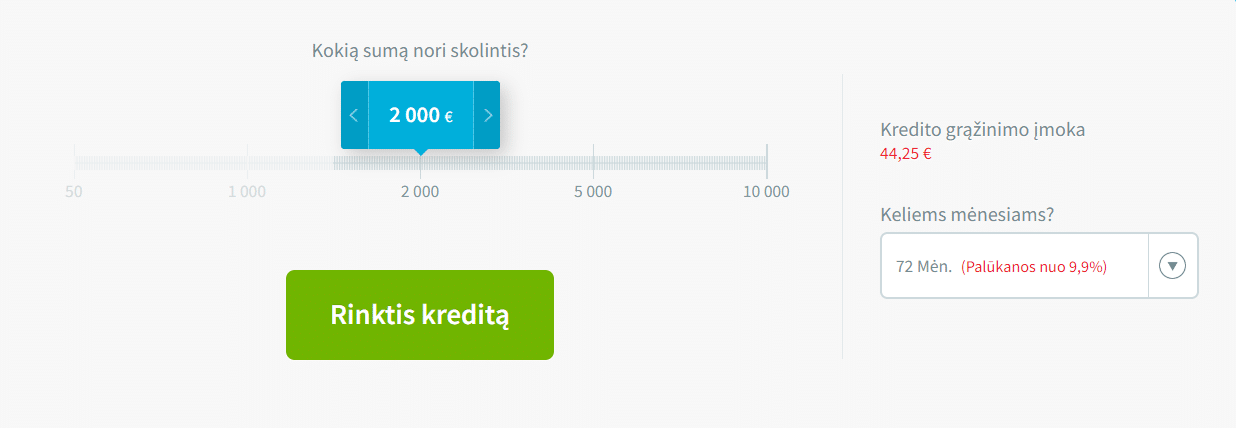 Suteikiamas kreditas nuo 50 € iki 10.000 €, palūkanos nuo 4,9 %