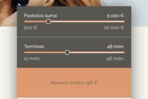 Jeigu norite pasiskolinti 4000 €, sutartį sudarant 60 mėn. laikotarpiui tuomet sąlygos būtų tokios: